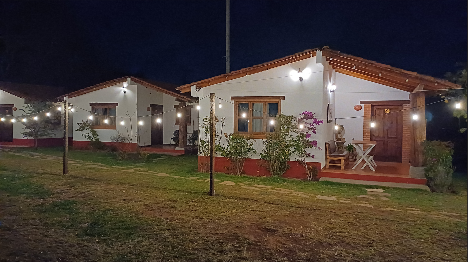 Dos cabañas con cama queen para el alojamiento de parejas.